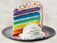 TGI Fridays Most Loved Menu is Available Friday February 12th through Sunday February 14th and maybe ordered for in-restaurant dining or for Pick-Up and Delivery Orders exclusions apply. Six layers of rainbow-colored vanilla cake filled high with a sweet vanilla icing and covered with rainbow sprinkles. As the name suggests the Rainbow Cake features six layers of bright rainbow-colored vanilla cake filled with a sweet vanilla icing and covered with rainbow sprinkles.